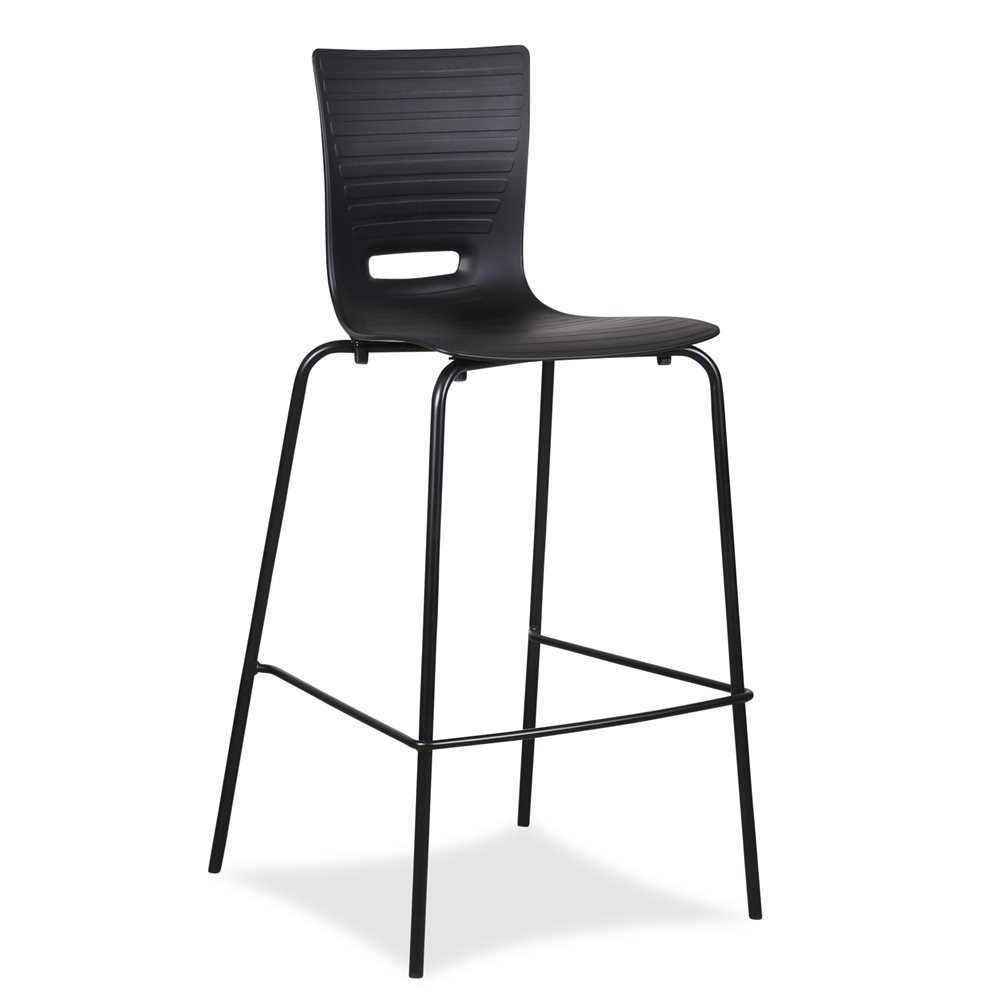 Let barstol fra HOLMRIS B8, model Groovy. Skallen er udført i sort plast og stellet i sort lakeret stål.