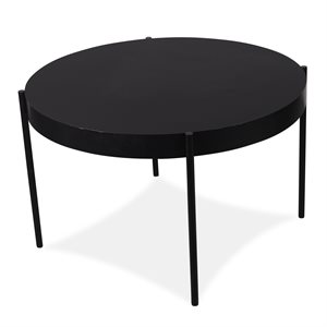 Flot rundt bord fra Verpan, model 430. Bordet er udført i sort nano laminat og har sort lakerede ben.