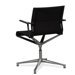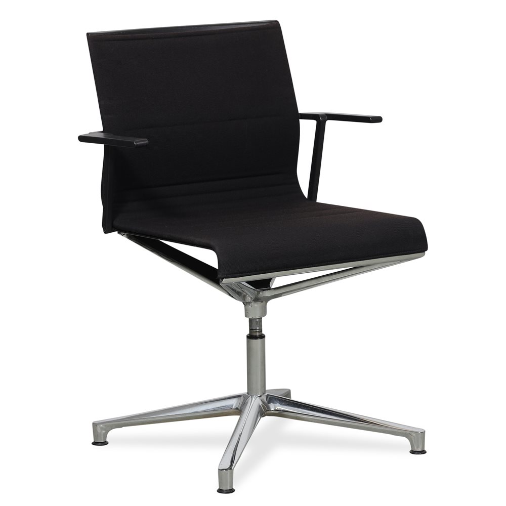 Klassisk konferencestol fra ICF i sort polster med poleret aluminiums fodkryds. Stolen har armlæn og returdrej.