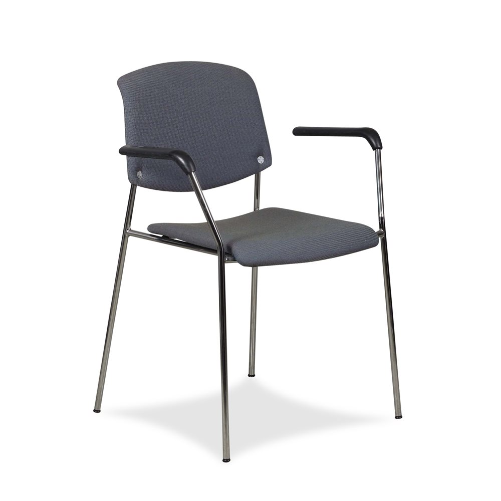 Klassisk konferencestol fra Magnus Olesen, model Pause. Stolen står med petroleumsblåt polster og har armlæn.