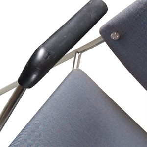 Stolen er brugt og har brugsspor, primært på armlæn.