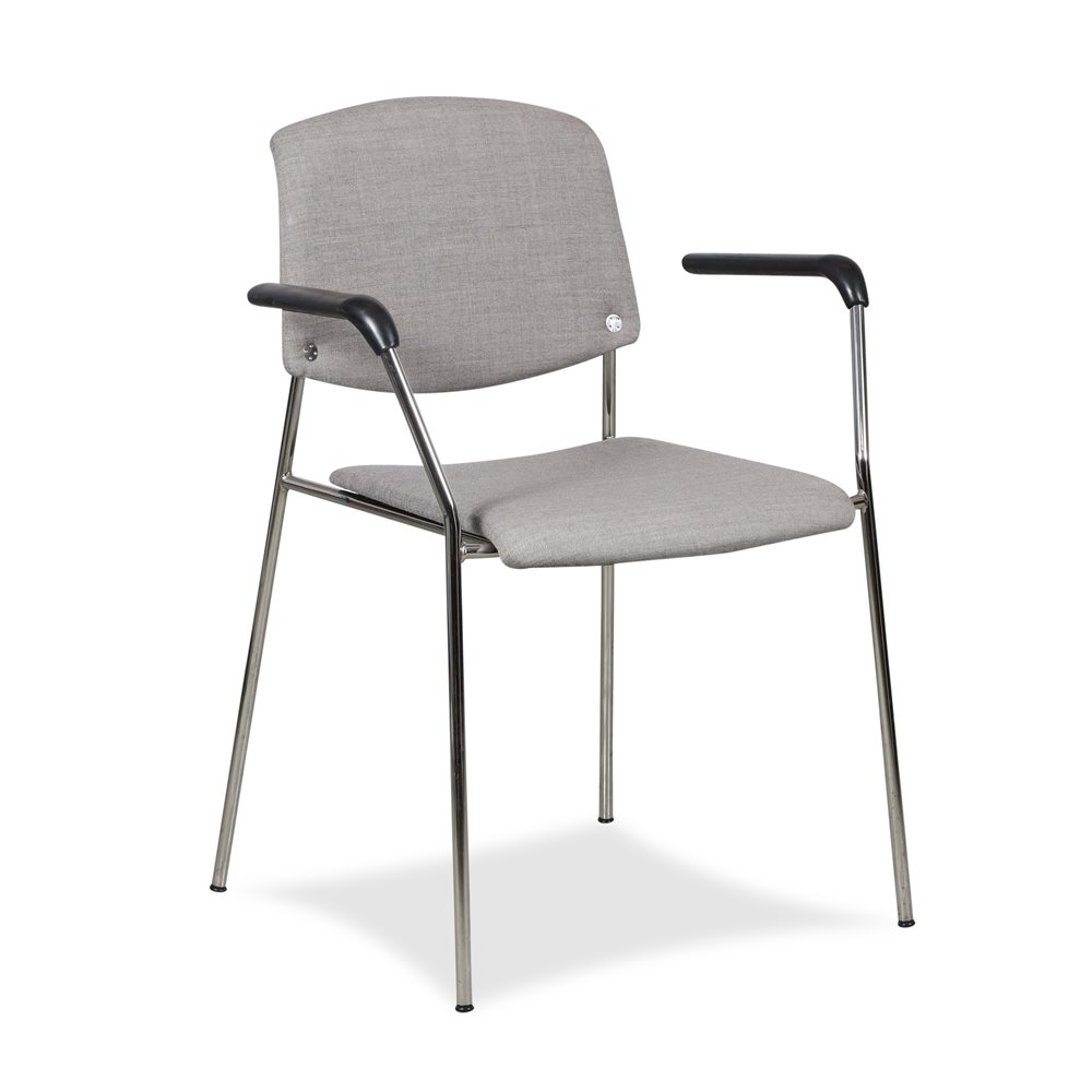 Klassisk konferencestol fra Magnus Olesen, model Pause. Stolen står med gråt polster og har armlæn.