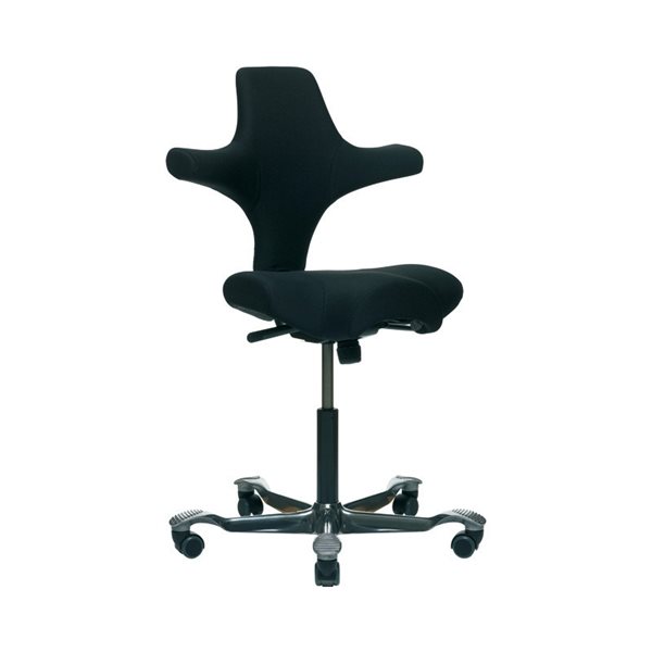 Kontorstol. Håg. Capisco 8106. Nyt sort polster. Sort fodkryds. 265 mm.
