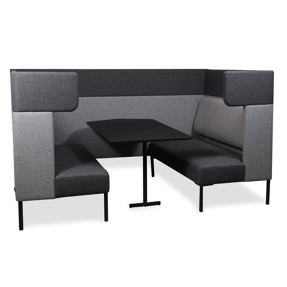 Kupésofa. FourDesign. FourUs Booth. Mørkgråt uld. Bord.