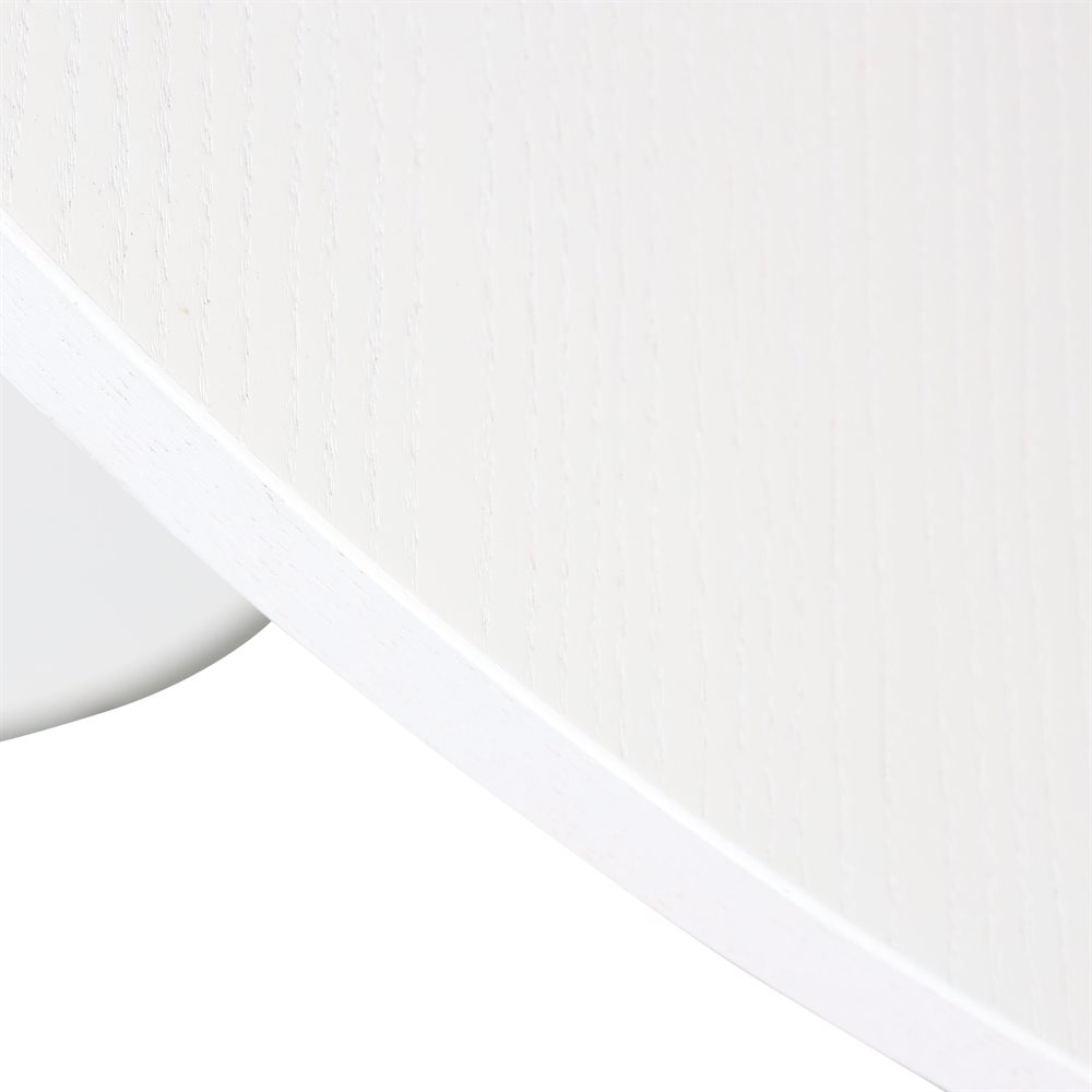 Rundt mødebord i råhvid med synlig træstruktur og råhvid lakeret søjle.